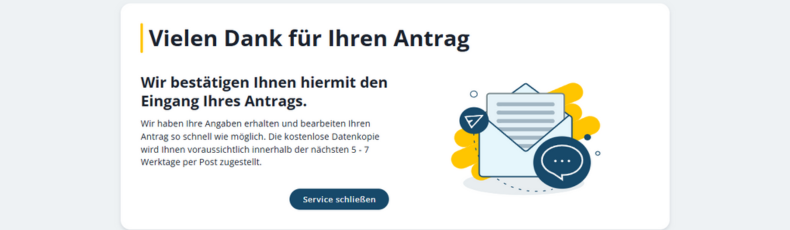 Das war es schon! Nur noch auf „Jetzt beantragen“ und du siehst diesen Bildschirm:
